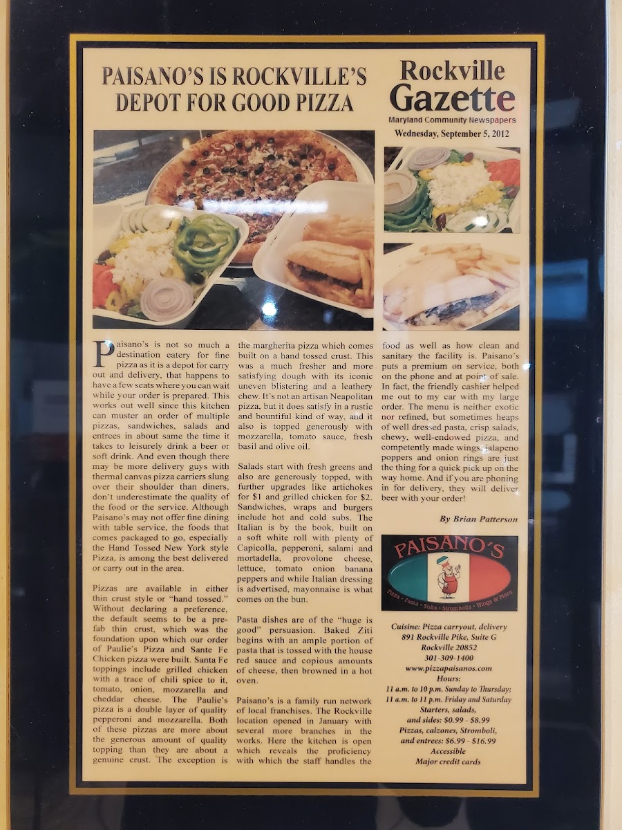 If you’re checking out the Paisano's Pizza Menu, come hungry. This spot at 891 Rockville Pike G in Rockville lays out a lineup that goes way beyond your basic slice. Of course, the pizzas are the main event - loaded classics, specialty combinations piled high with toppings, and build-your-own options that let you get exactly what you’re craving. The crust hits that sweet spot between crispy and chewy, and there’s plenty of cheese in every bite.